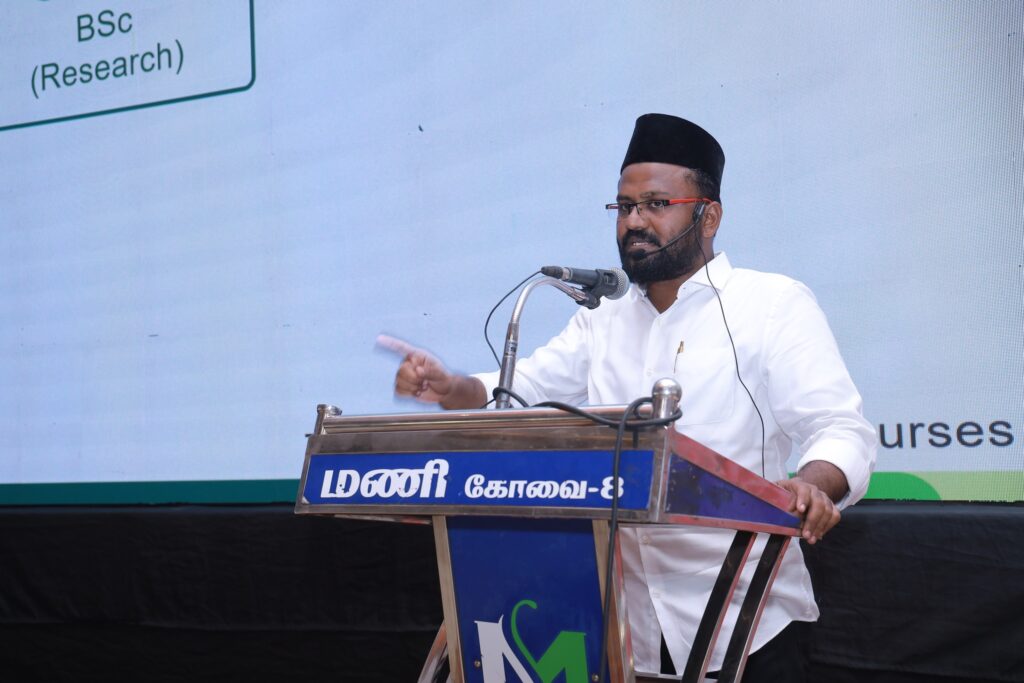 அதிகரித்து வரும் போதைப் பழக்கம் குறித்து கோவை உயர்கல்வி மாநாட்டில் புதுச்சேரி ஜாமிஅத்துல் ஹிக்மா அரபிக் கல்லூரியின் ஆங்கிலத் துறை பேராசிரியர் அப்துல் ஹக்கீம் அவர்கள் விழிப்புணர்வு உரை நிகழ்த்தினார்.