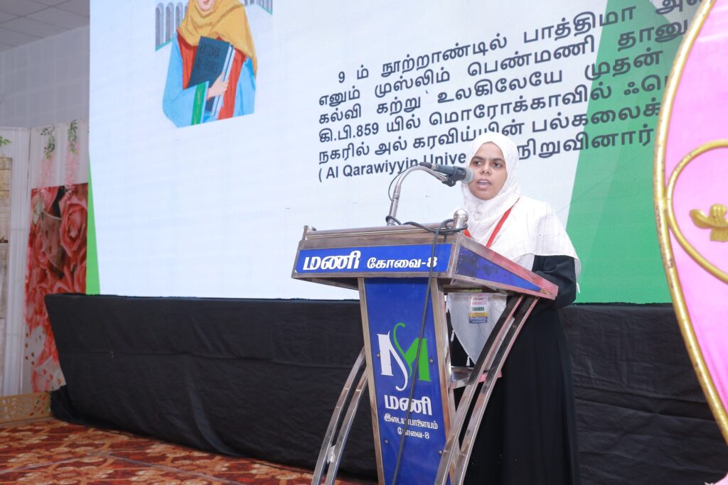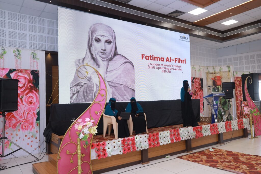 மொரோக்கோ நாட்டில் வாழ்ந்த கல்வியாளர் ஃபாத்திமா அல் ஃபிஹ்ரி அவர்கள் குறித்த ஒரு சிறிய கலந்துரையாடல் நிகழ்ச்சியை அன்னை கதீஜா கலை அறிவியல் மகளிர் கல்லூரி மாணவிகள் நிகழ்த்தி காட்டினர்.